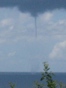 These were water spouts, a stunning sight…the longest spears were connecting with the ocean and we could actually see the spinning spray pulling up from the water’s surface like something out of a Hollywood blockbuster – whirling upwards, thousands of feet into the sky. Had we a telephoto lens I imagine we may have seen schools of anchovies going for an unwilling ride.