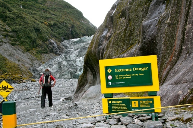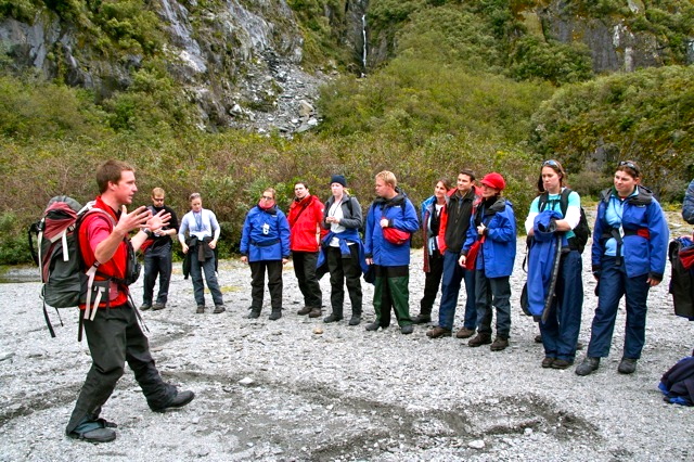 Sometimes, the best experiences are thrust upon us from a seemingly unfortunate twist of events. Today we had hoped to take a heli-hike combo onto the Franz Josef Glacier. First, we convened at the lodge to await the verdict from the heli pilot on whether we would go up or not, due to sketchy weather… 9am… told to return at 9:15 but it doesn’t look promising… even though we had been silently celebrating the fact that there was no rain. The clouds needed to lift out of the valleys of the peaks. We not only need to land on the glacier… they need enough of a window to retrieve us. ; ) They DO store barrels of emergency tents, sleeping bags and booze in case a team gets stranded up on the glacier overnight. Wow! Now THAT would be an adventure! Survivor New Zealand anyone?
