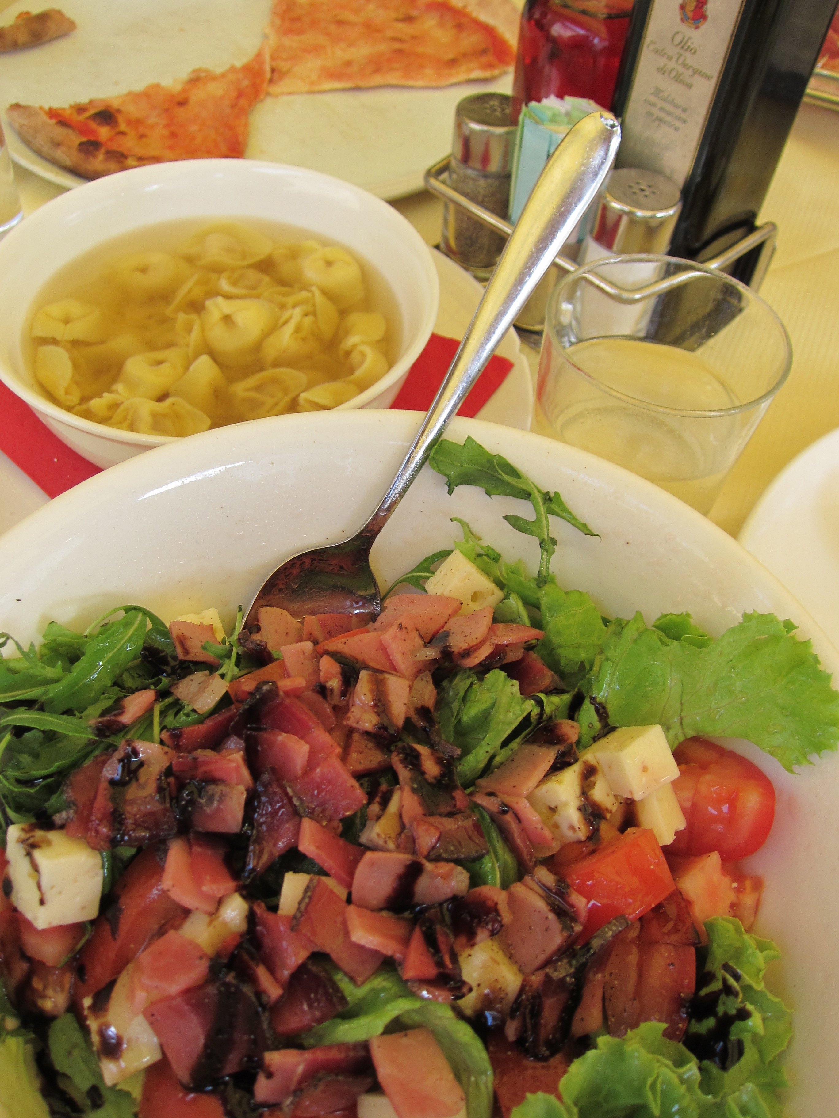 Today was another mixed bag of awesome in the Italian Dolomites. In the morning, some of the group enjoyed an international horse-jumping event, one (not me!) went on a vigorous bike ride and we all reconvened for a lovely lunch on a covered patio of a local restaurant. I’m becoming hooked on these grande salads they offer.