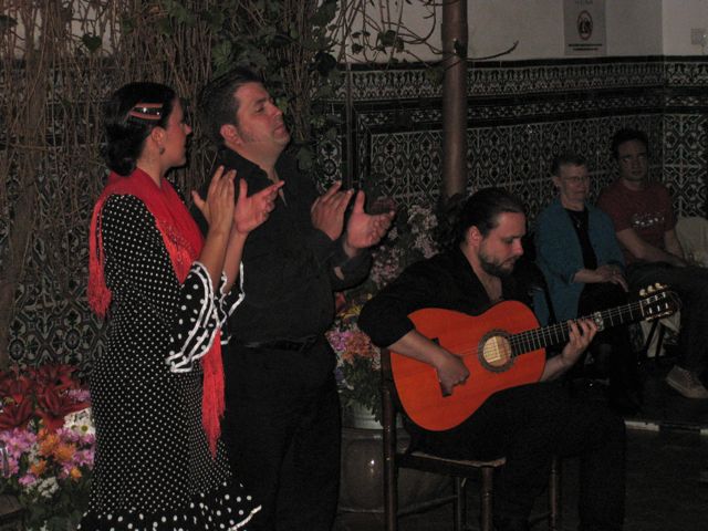 Let’s just say after an evening of rhythmic clapping, impassioned stomping, vigorous strumming and singing alternating with plaintive wailing…I was awakened to more than just a new form of entertainment.  The sultry intimacy in the air was palpable.  She and I, young and impressionable foreigners, made a hasty and prudent exit.  We didn’t wait to see what similar appetites the dance had stirred in the other patrons.  I am also a late-in-life dancer,  and so have come to appreciate and marvel at this dance form in my many subsequent visits to Spain even more than my first awe-struck encounters.