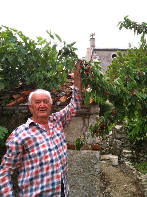 He proudly shows off his cherry trees, burgeoning with ripe fruit, and starts plucking them off for us to sample them right there and then.  All we can manage to do is smile, mutter “hvala” (“thank you” in Croatian) over and over, and of course, dutifully eat the proffered cherries.  He then opens our handbags and starts stuffing them full of fruit, gathering up the best, shiniest offerings, happy to have found such grateful recipients.