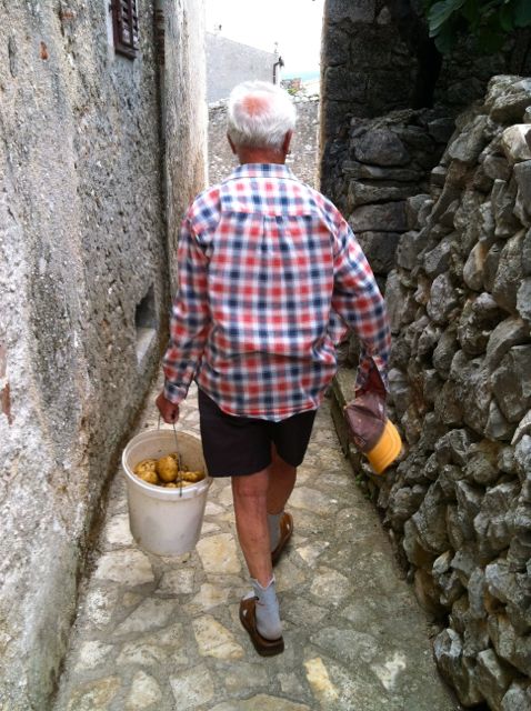 Fran, beckoning us to follow him and his potatoes to his bountiful kitchen, Cres, Croatia